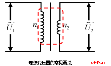 理想变压器常画为上图所示的形式,红框标出的部分为变压器的核心部件,现将其工作原理画出如下图所示: