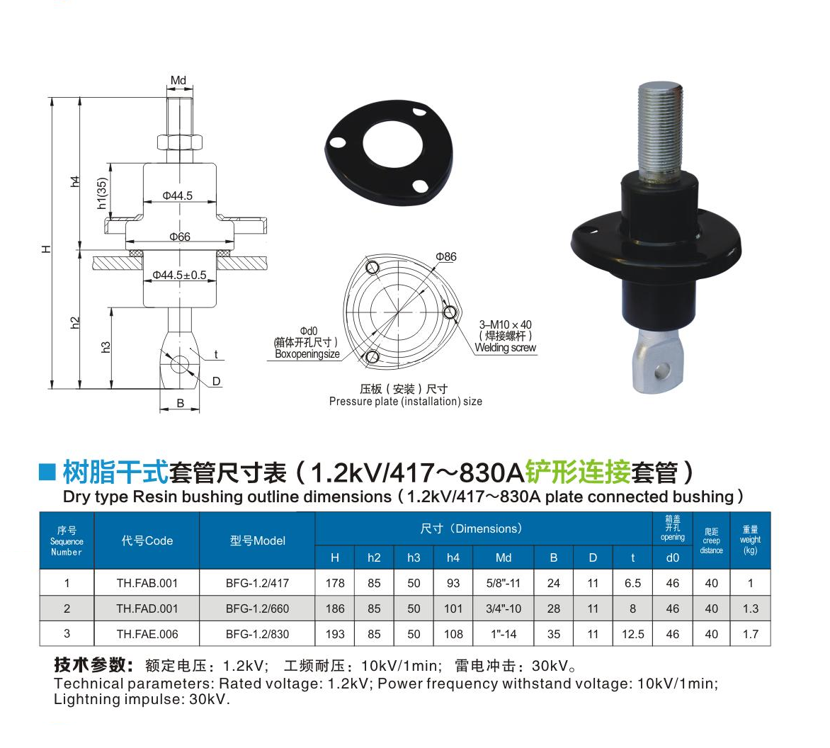 树脂干式套管1.2kV/417~830A铲形连接套管